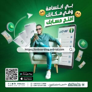 افتح حسابك الآن – بنك أمدرمان الوطني – https://onboarding.onb-sd.com - اتبع التعليمات البسيطة لإكمال إجراءات فتح الحساب.