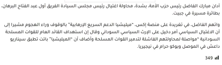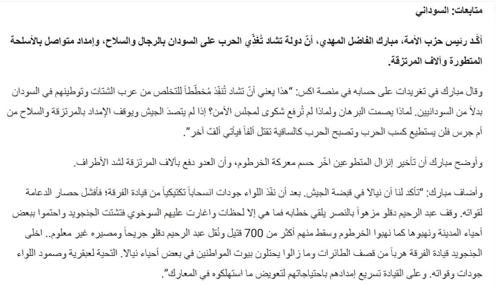 ليس هناك من تفسير (منطقي) عقلاني مقبول لمواقف وتصريحات وتغريدات المدعو مبارك الفاضل المهدي بما في ذلك موقفه الأخير وهو يتحدث عن تحالف البرهان مع (النظام البائد) واصراره على الاستمرار في الحرب.. وأن البرهان خدع الشعب بالذهاب لمحكمة العدل الدولية وأنه سيصدر قرار بالتعويض فماذا استفدنا؟؟..
