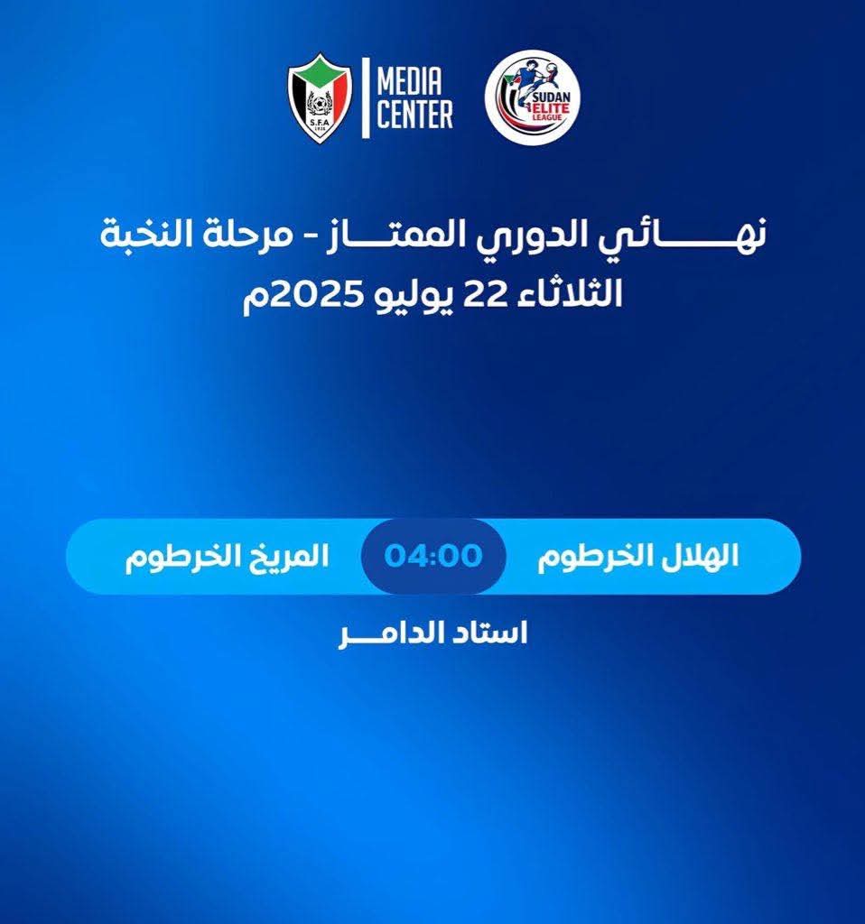 تُحبس الأنفاس عصر اليوم باستاد الدامر، حيث يلتقي الغريمان التقليديان الهلال والمريخ في مواجهة مصيرية تُختتم بها منافسات دوري النخبة السوداني المؤهل للمشاركات الخارجية، وسط ترقّب جماهيري وإعلامي واسع.