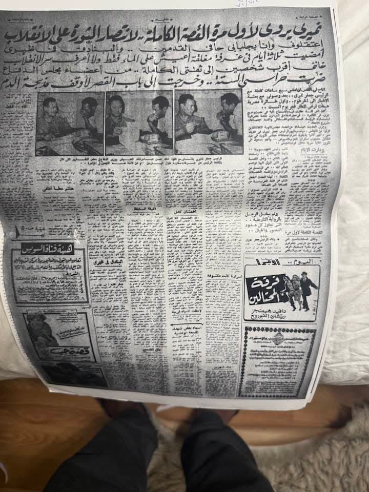 واتيح لي لاحقاً تكليف من يساعدني في البحث بتصوير تغطية “أخبار اليوم” المصرية لانقلاب 19 يوليو وانكساره. وكانت نشرت وقائع مؤتمر نميري الصحفي يوم 25 يوليو على صفحاتها الخامسة والسادسة يوم 26 يوليو. جاء ضمن خطوطه العريضة ما يلي: