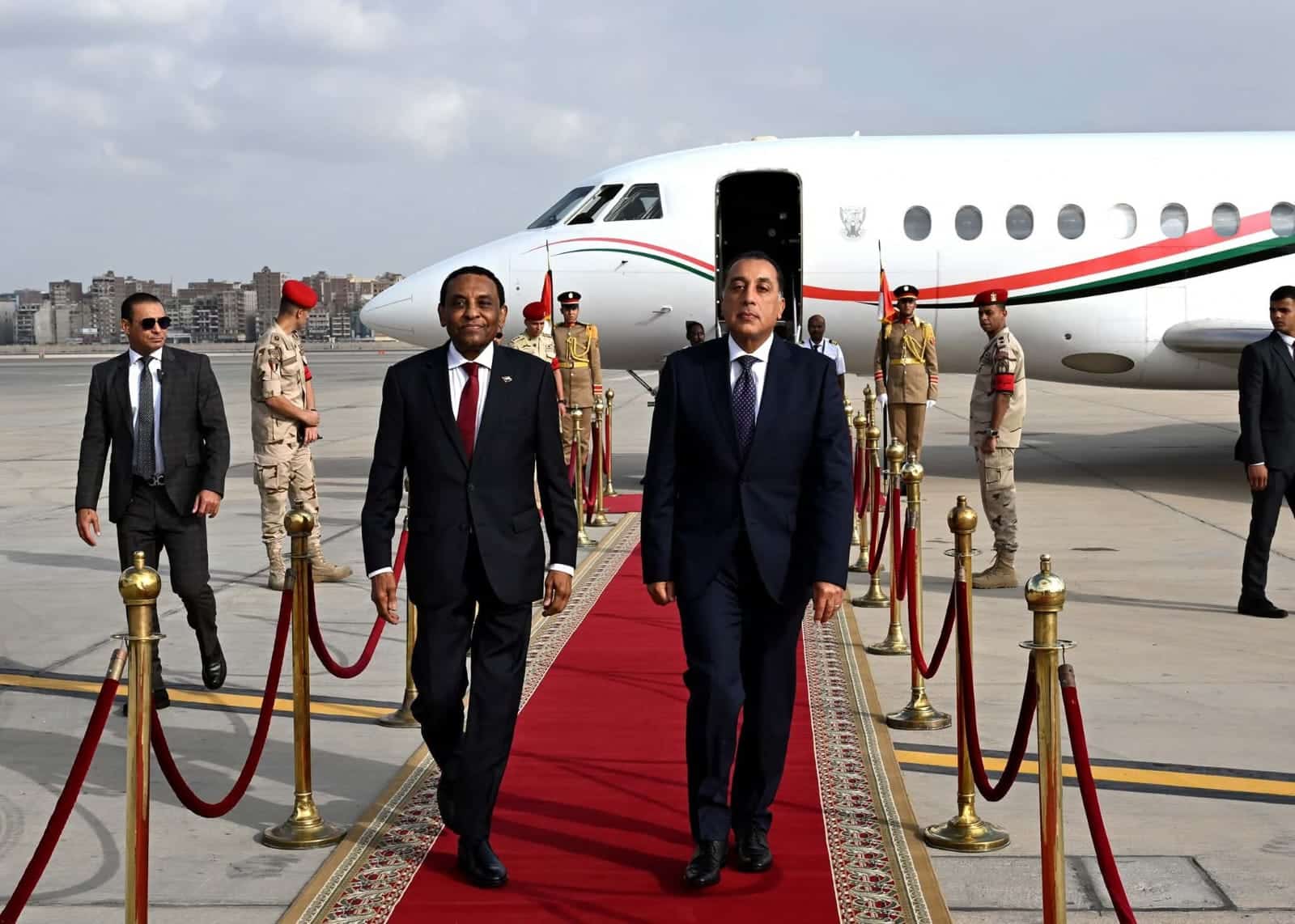 في مشهد حمل رسائل سياسية واضحة، استقبل الدكتور مصطفى مدبولي، رئيس مجلس الوزراء، صباح الخميس، نظيره السوداني الدكتور كامل الطيب إدريس، بمطار القاهرة الدولي، وسط مراسم استقبال رسمية حافلة، عزفت خلالها الموسيقى العسكرية السلامين الوطنيين للبلدين، واصطفت حرس الشرف في مشهد لافت يعكس أهمية الزيارة.