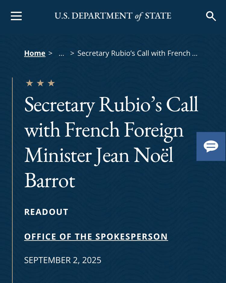 ترجمة ـ الراي السوداني  ـ ناقش وزير الخارجية الأمريكي ماركو روبيو مع نظيره الفرنسي جان نويل بارو القضايا الملحة في السودان وإيران والكونغو الديمقراطية، وفقًا لتصريح تومي بيجوت، نائب المتحدث باسم الخارجية الأمريكية.