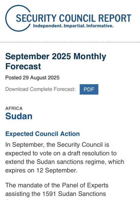 وتبرز الخلافات بين أعضاء المجلس في هذه الجولة: فروسيا تعتبر “أي تلميح لتوسيع العقوبات خارج دارفور غير مقبول”، بينما تطالب فرنسا بتوسيع نطاق العقوبات وإدراج أفراد وكيانات إضافية. وفي الوقت نفسه، تدعو بعض الدول إلى مواءمة اختصاص نظام العقوبات مع فريق الخبراء الذي يساعد لجنة العقوبات لتسهيل رصد الانتهاكات وتقديم التوصيات.