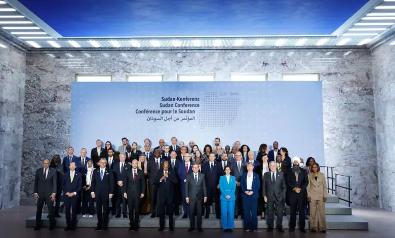 وتزامن ذلك مع اعتصام مئات السودانيين أمام مقر وزارة الخارجية الألمانية، احتجاجاً على استبعاد الحكومة السودانية من الدعوات، ورفضاً للنهج الذي اتبعه المؤتمر في تغييب الأطراف الرسمية.