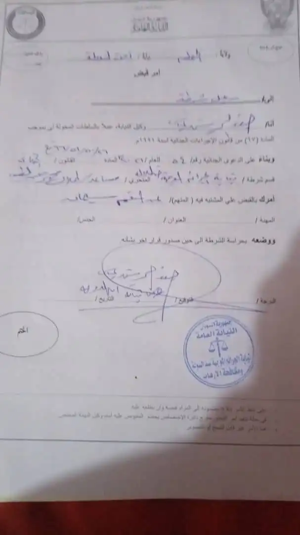 ويأتي هذا الإجراء في إطار تدابير عدلية تتخذها النيابة العامة لضمان تطبيق القانون ومحاسبة المتورطين في الجرائم الموجهة ضد الدولة.